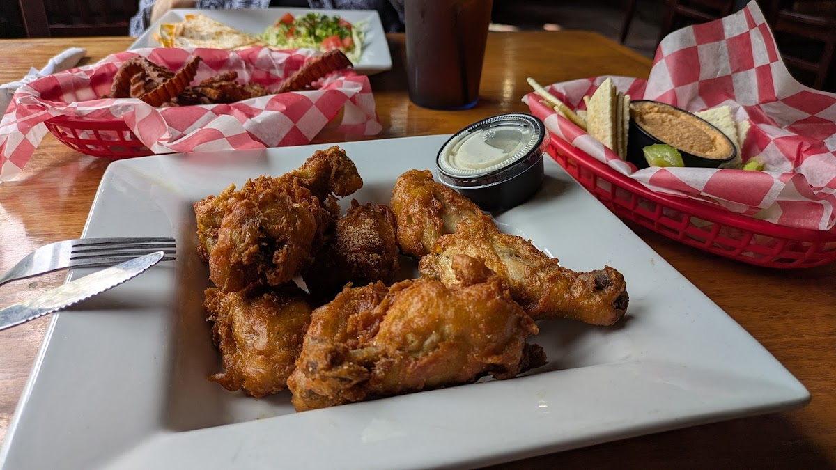 Loved the location, wish it had been warmer to sit out on the deck and enjoy the creek. The Mrs and I decided to have our Anniversary dinner here but we will return in the late Spring to dine outside on the deck. I had the Catfish with slaw, fries and hush puppies while the Mrs tried the Ribs with slaw and a baked potato. For our dessert we shared a cheesecake with raspberry sauce. It was all sooo good. The Catfish was perfectly fried and a large portion. The ribs were good with a delicious BBQ sauce. The raspberry sauce on the cheesecake was fantastic.