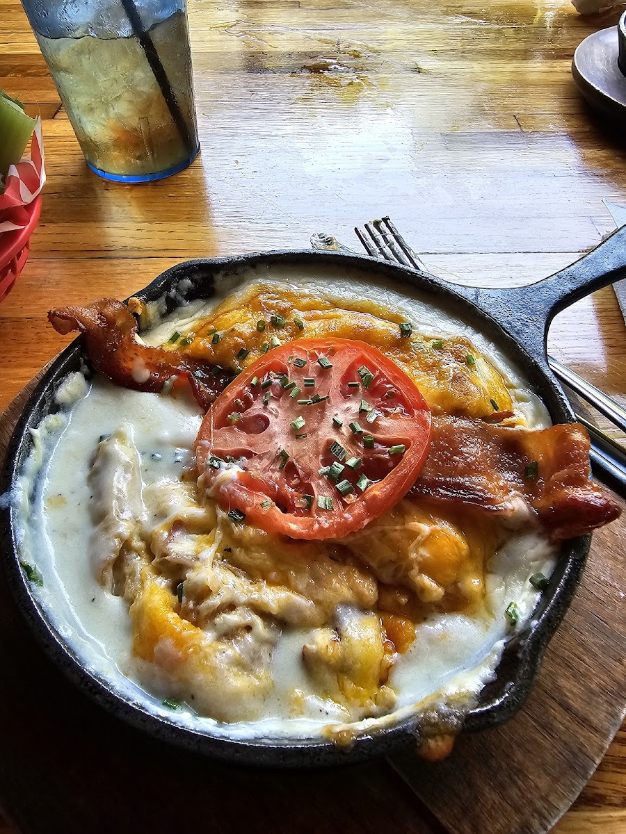Wow two days in a row, because this place is just that amazing! The 1st day we had Shrimp Po’boy with the best sweet potato fries I’ve had eaten! Hot wings and loaded potatoes skins. Today (I forgot to picture) pulled pork with hush puppies, my substitute choice, and my husband had chicken Alfredo and a side salad. Both dishes served with Texas toast and for dessert!!!! Drum roll..... Warm Blackberry cobbler with a scoop of real vanilla ice cream!! If only we had more days in the area!! Don’t miss this place!